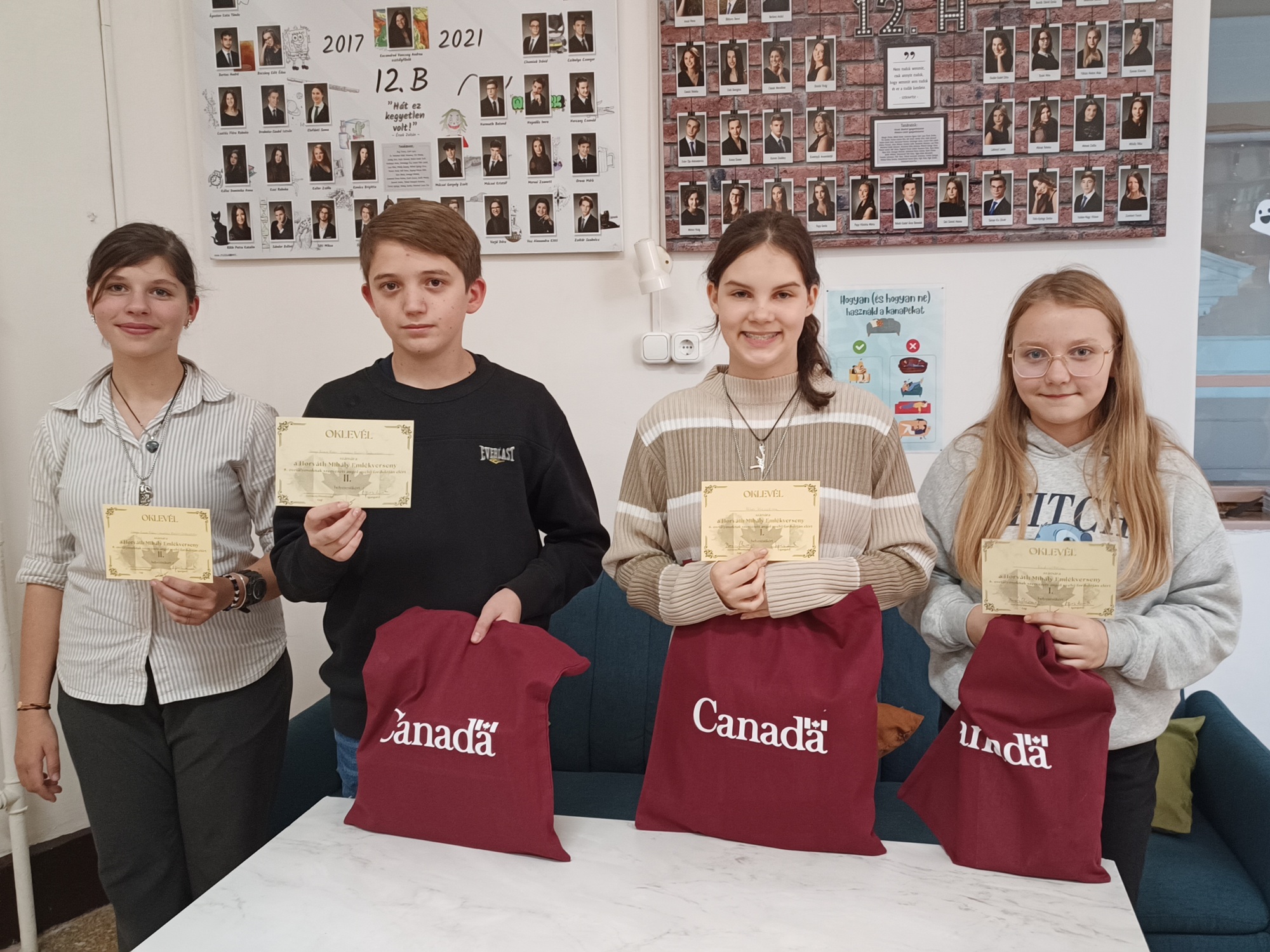 A Horváth Mihály Gimnázium angolversenyén Fehér Krisztina és Radics Flóra (6.b) I. helyezettek, Varga Emese Réka (8.a) és Hadobás Balázs (8.b) pedig II. helyezettek lettek. A többiek – Csernák Lili, Hebők Luca, Igaz Anna, Máriás Kamilla Éva, Szabó Alexa, Tóth Martina Dorina – is ügyesen helyt álltak, képviselték iskolánkat.