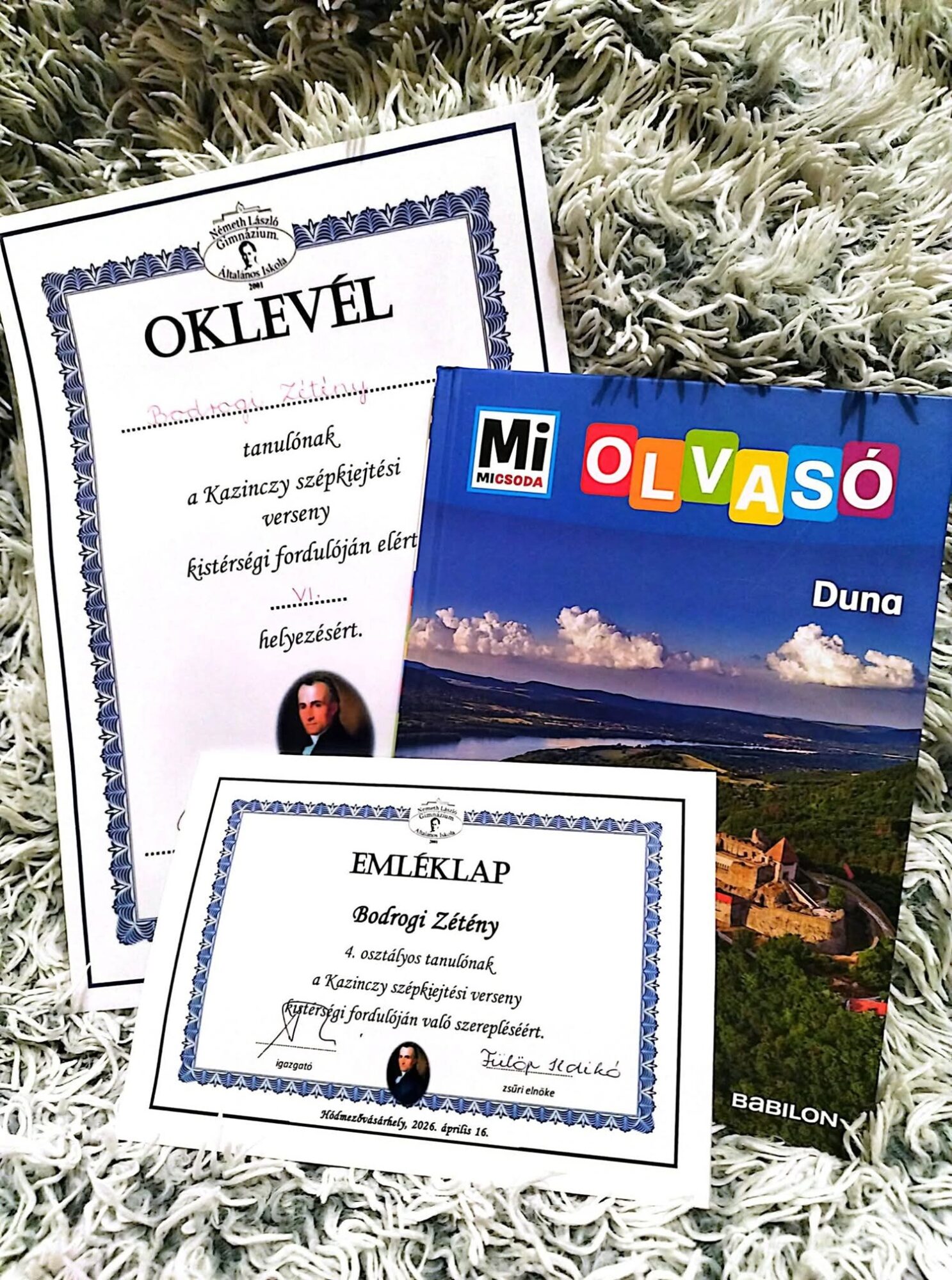Bodrogi Zétény és Tóth Dorina VI. helyezést értek el a Kazinczy szépkiejtési verseny városi fordulóján.