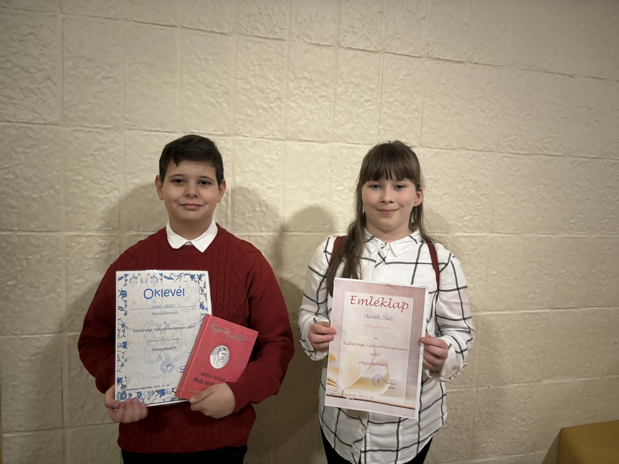 A Szent József Kertvárosi Katolikus Általános Iskola által rendezett kistérségi szavalóversenyen Horváth Nóra, Sándor Vince Tamás, Sándor Alíz Katalin, Tóth Martina Dorina és Véber Adél képviselte iskolánkat.