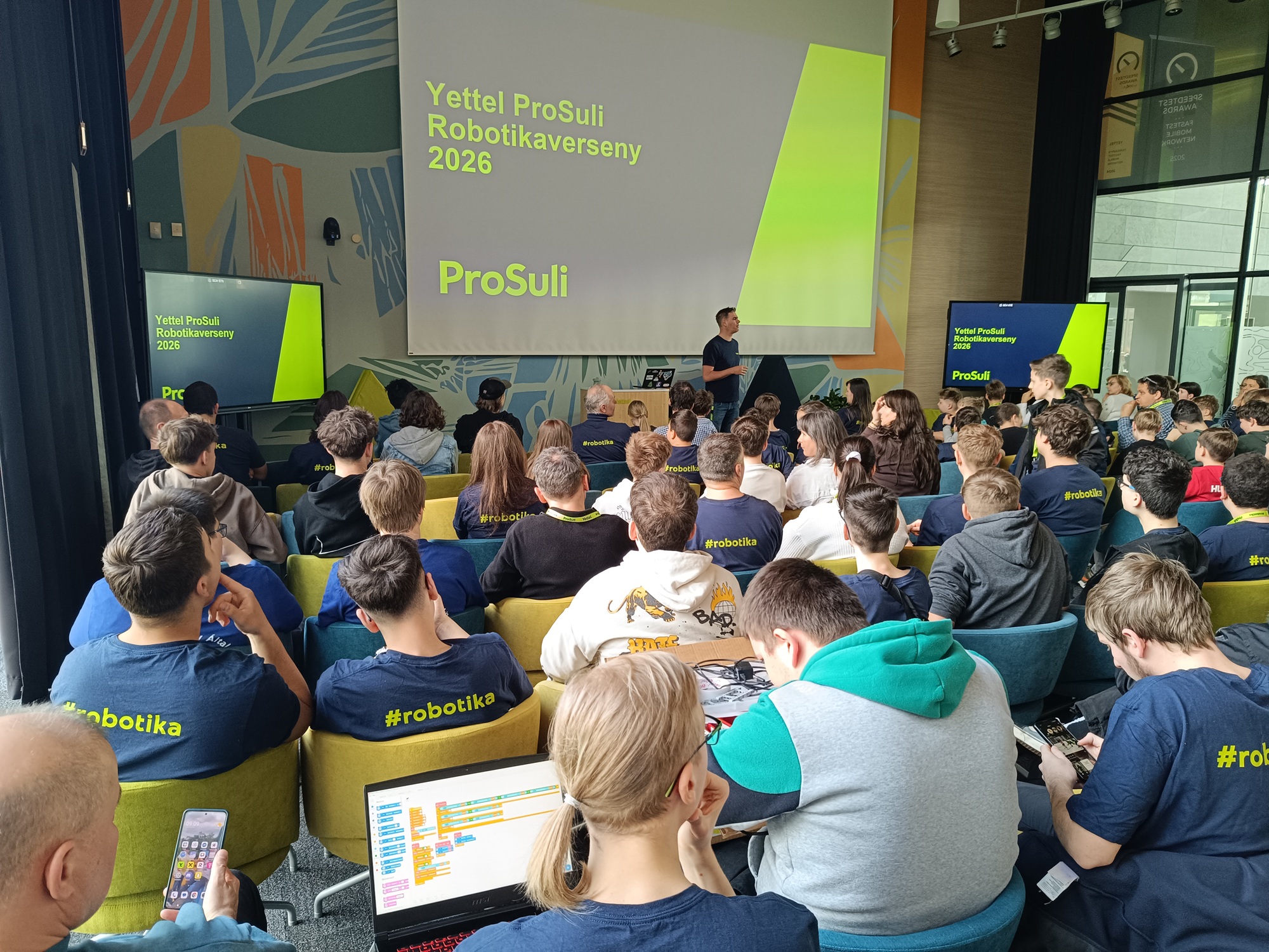 A ProSuli 5. országos robotika versenyén résztvevő hatvan csapatból öt képviselte az iskolánkat. Két korcsoportban – 14 év alatt és felett -, valamint idén először kezdő és haladó kategóriában is versenyeztek a csapataink. A regionális fordulóhoz hasonlóan itt is csak a legeredményesebbek kerülhettek be a délutáni, tényleges döntőbe, melybe két csapatunk is bejutott.