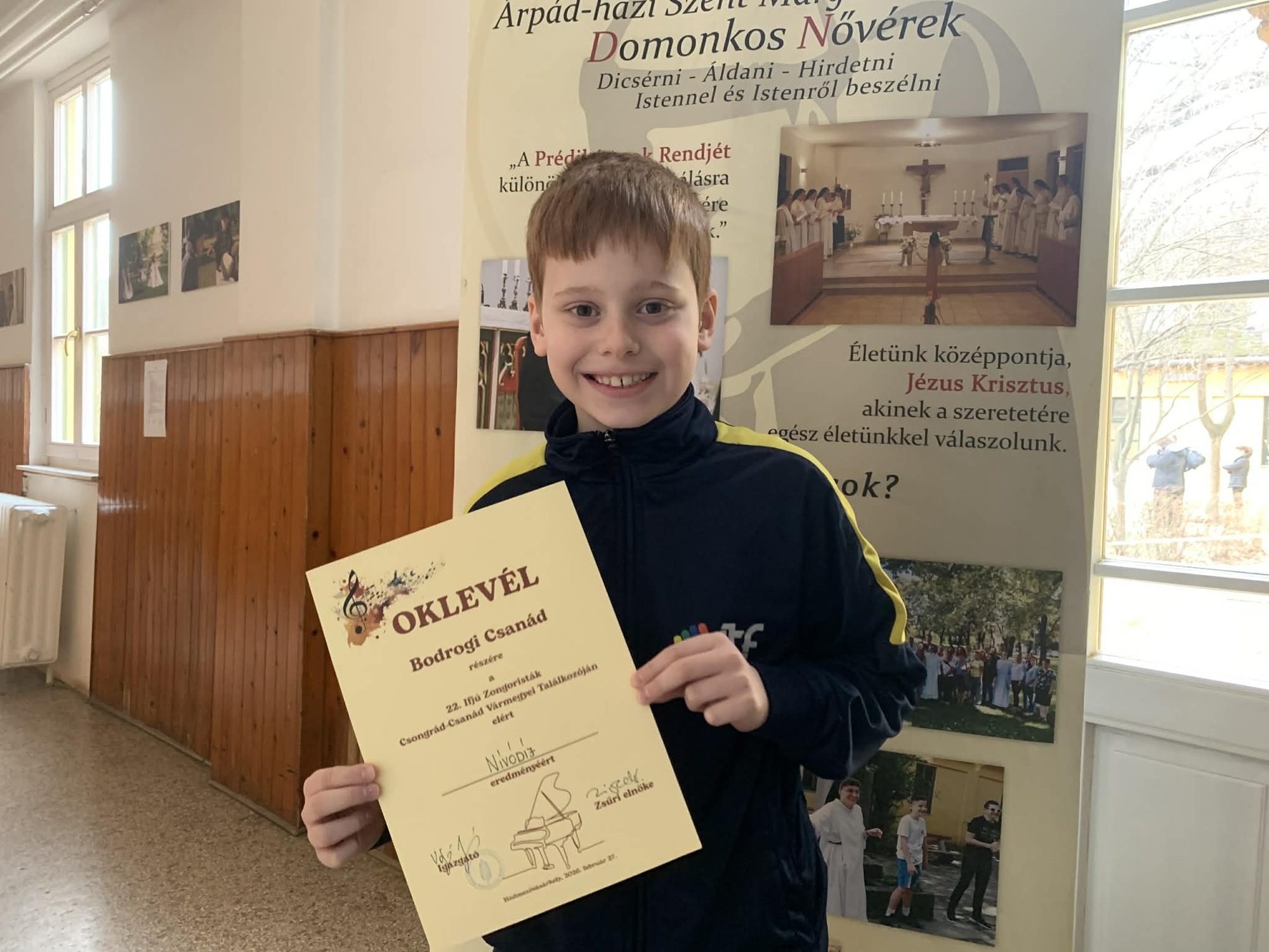 22. Ifjú Zongoristák Csongrád-Csanád Vármegyei Találkozóján Bodrogi Csanád nívódíjas lett.